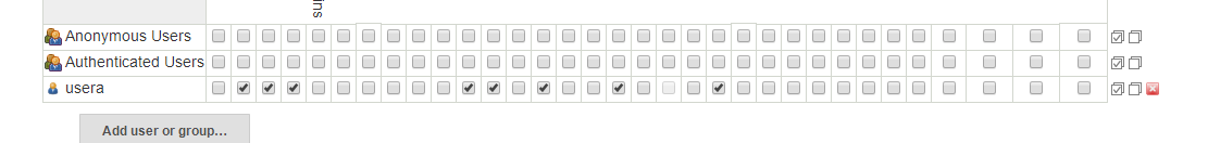 以下是新创建的两个用户,后面的按钮齿轮用来更改密码,红色的代表可以删除用户